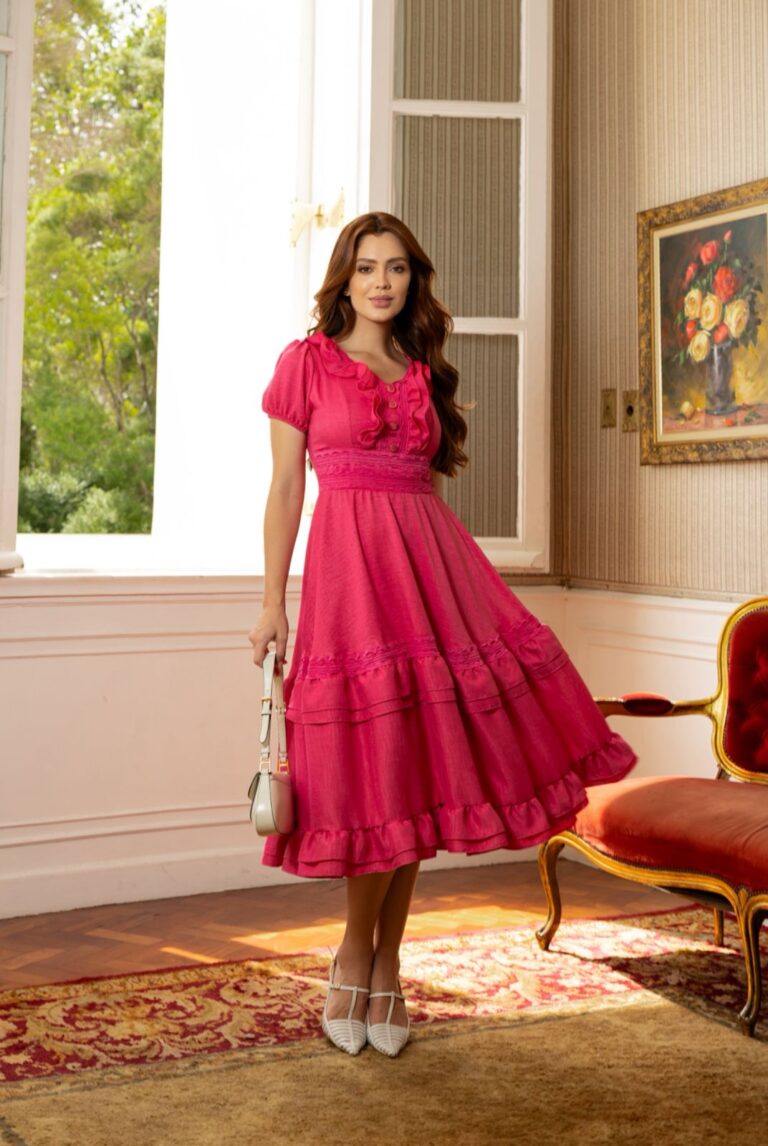 Vestido Longo de Tecido Plano Rosa – 28159 Titanium