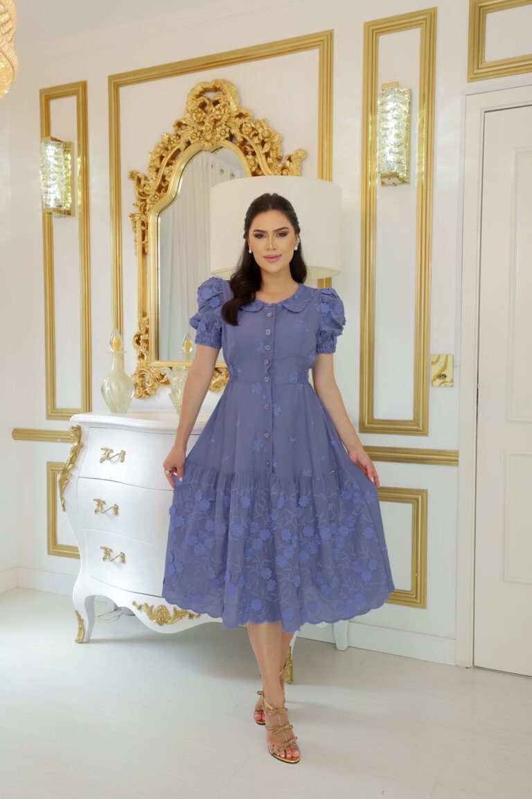 Vestido Semi Godê Alfaiataria de viscose – 28128M Titanium