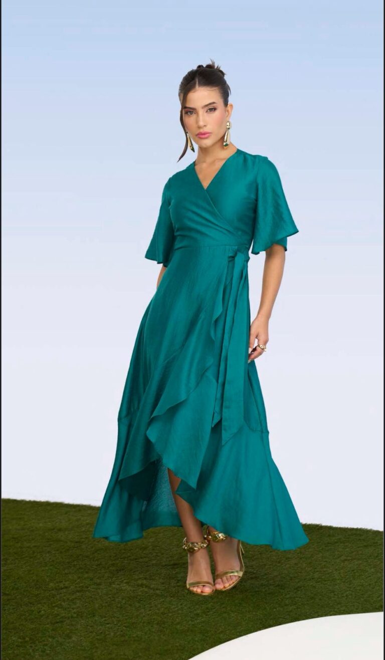 Vestido com Transpasse e babado verde – 28095 Titanium