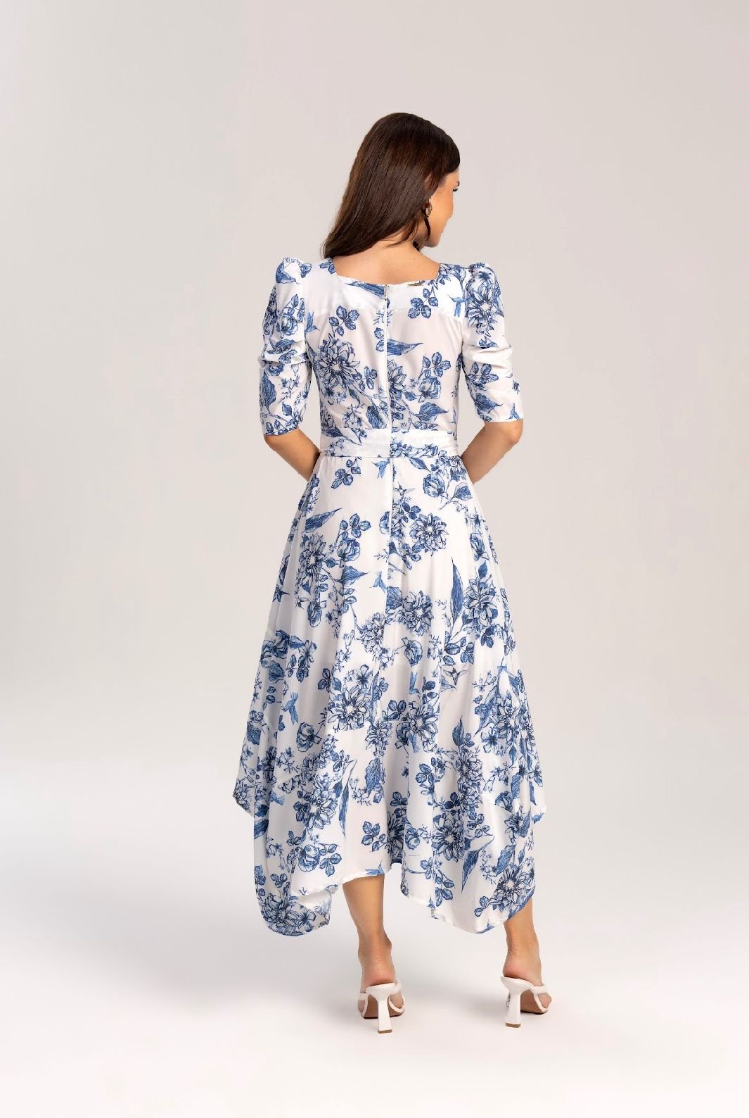 811131- Vestido de crepe estampado com faixa – Laura Rosa