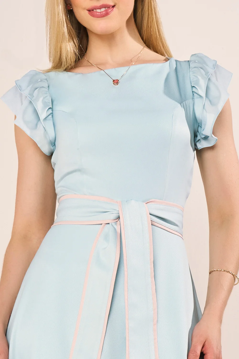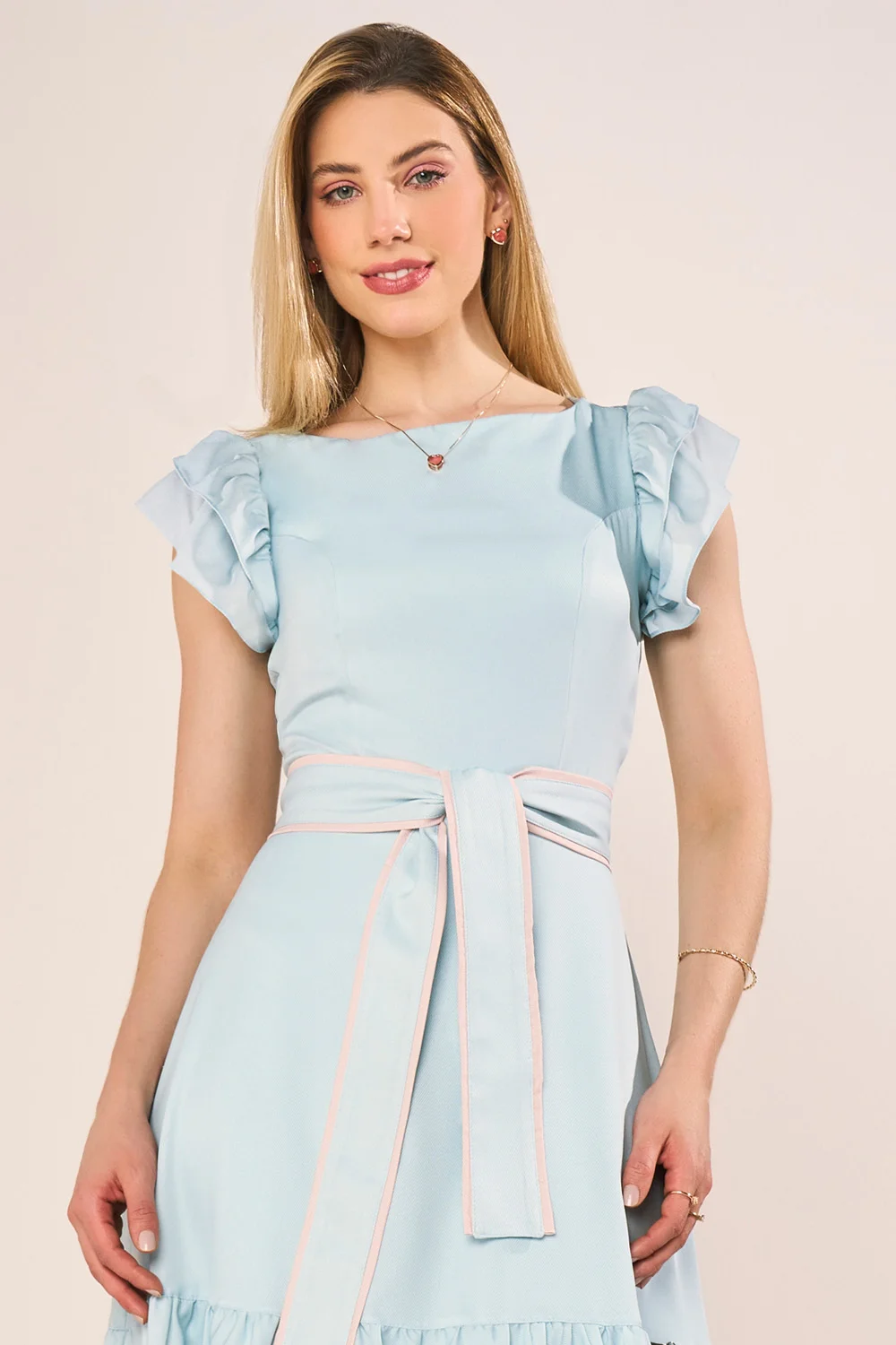 Vestido Azul Estampa Floral Exclusiva Godê Midi Fascinius