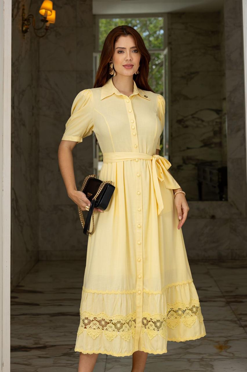18% OffVestido Semi Godê Com Tecido Texturizado Poá Laura Rosa Jeans