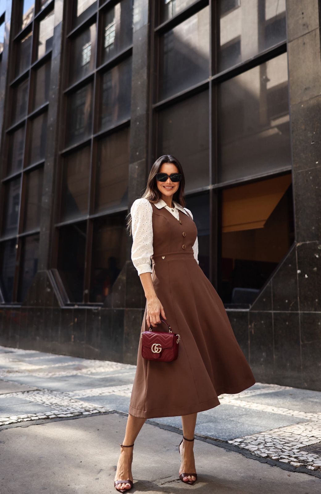 Modelagem evasê midi: valoriza a silhueta com feminilidade e leveza