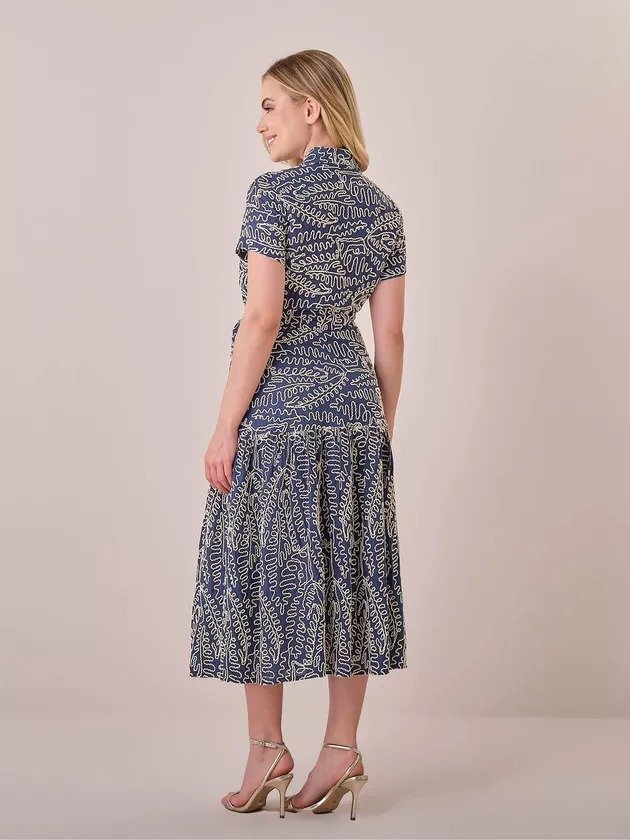 O Vestido Clara reflete elegância atemporal em uma proposta que une estrutura e leveza. Confeccionado em algodão bordado, apresenta textura delicada e toque natural que valorizam o visual com sofisticação. Sua modelagem maxi midi possui recorte na saia e caimento amplo, garantindo movimento e conforto. A gola estilo camisaria e a fileira frontal de botões personalizados reforçam o charme clássico da peça, enquanto a fenda frontal traz leveza ao caminhar. Acompanha faixa separada para ajuste na cintura, permitindo diferentes formas de amarração. Totalmente forrado, oferece conforto e segurança, tornando-se uma escolha perfeita para quem busca uma elegância suave e versátil