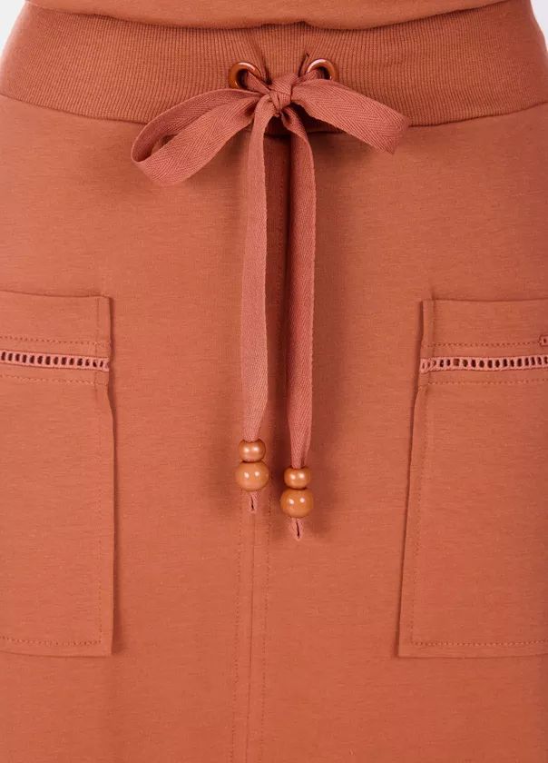 O vestido Simone foi confeccionado em malha de algodão sustentável e ribana. O modelo apresenta decote redondo, mangas curtas com entremeio de guipir, ribana na cintura com ilhós, galão e ponteiras, bolsos funcionais com detalhe em entremeio de guipir, fenda frontal e possui forro. O vestido Simone é uma ótima escolha para quem ama conforto.