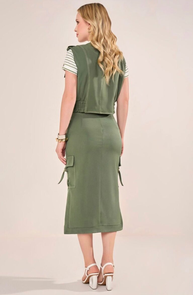 Conjunto Feminino Verde com Colete de Zíper e Saia Midi – Fascinius