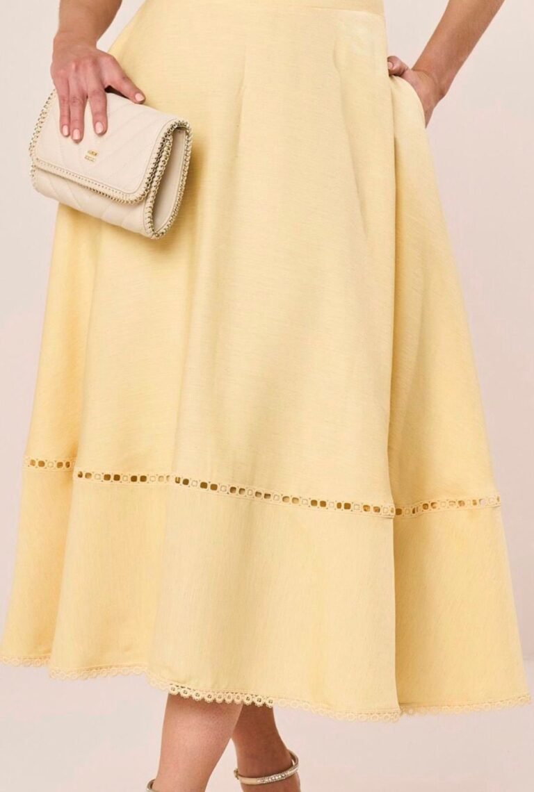 Conjunto Com Bordados Em Pérolas Godê Midi Essenza Fascinius